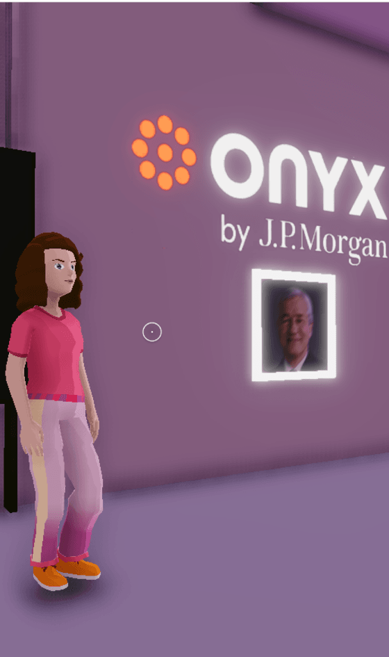 Garnet Roach visits the JPMorgan Onyx Lounge in Decentraland, in the metaverse (Source: Decentraland/metaverse)