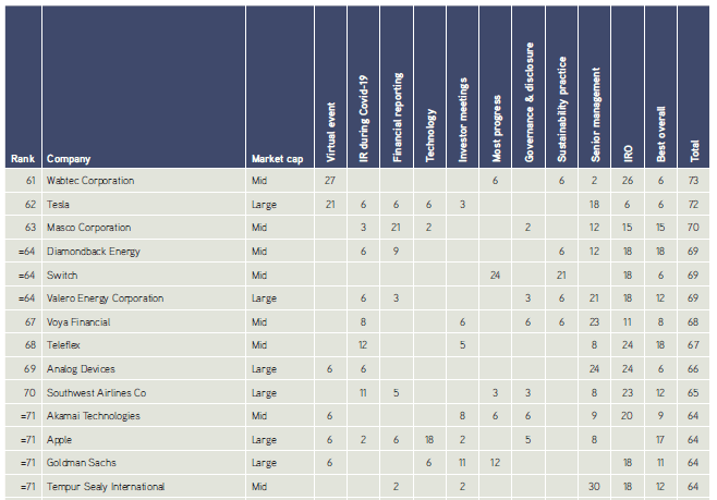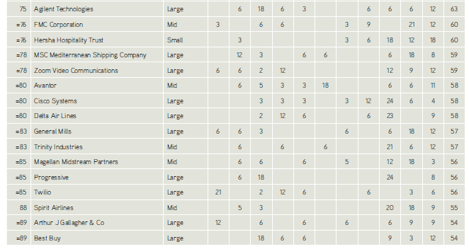 Ranked companies’ points breakdown